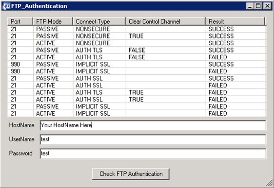 FTP, FTPS connections were tested using FileZilla Server. SFTP connections were tested using COPSSH and Sysax MultiServer.