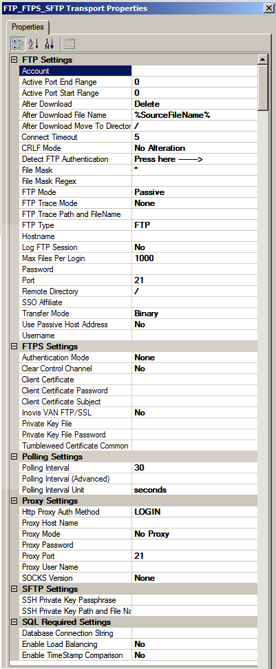 Invoice VAN FTP/SSL– By choosing yes, the FTP_FTPS_SFTP Adapter sets all the properties correctly to connect to an Inovis VAN FTP/SSL.